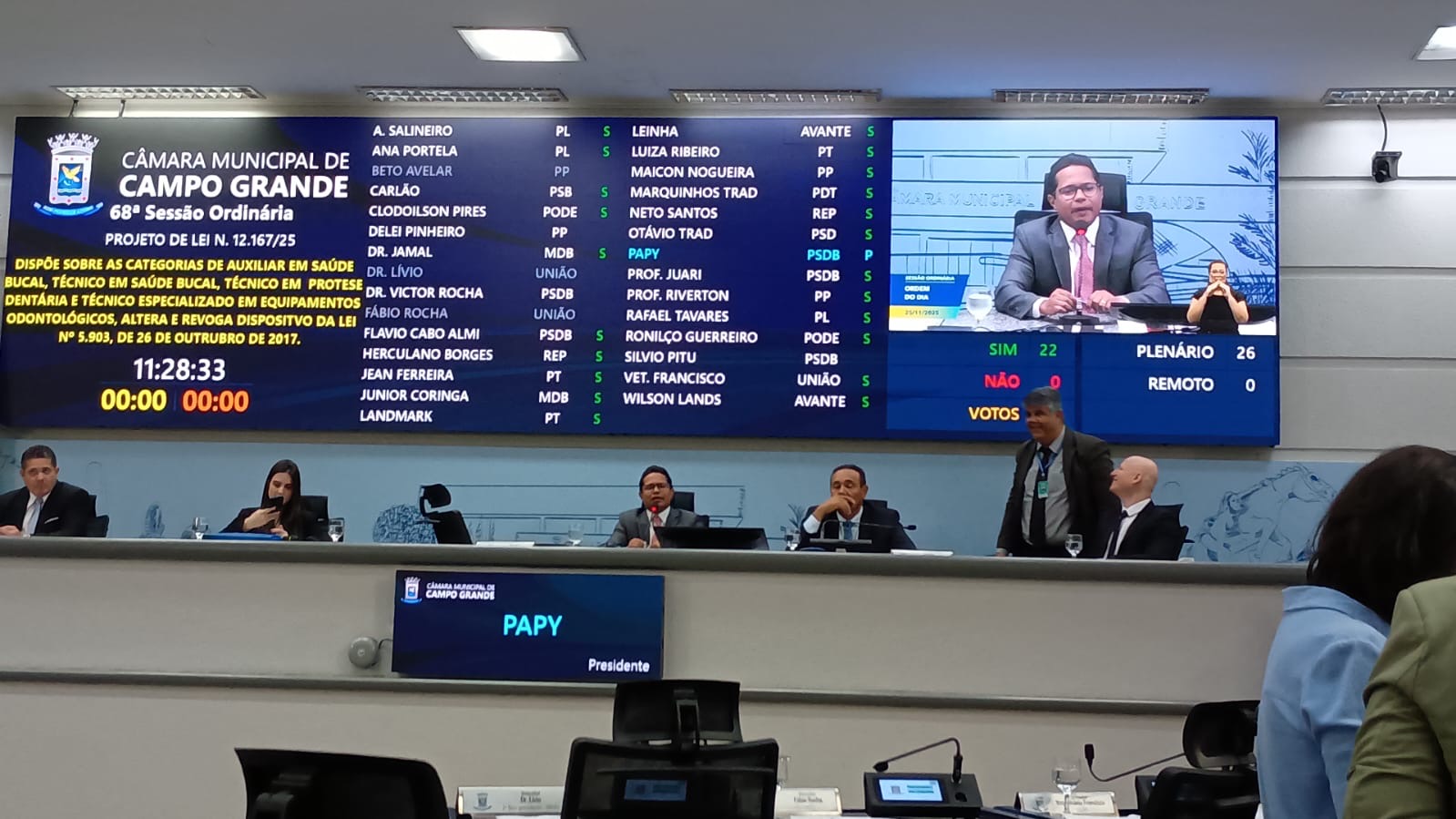 A Câmara Municipal de Campo Grande aprovou na manhã desta terça-feira (25) o Projeto de Lei nº 12.167/25, que atualiza e revisa dispositivos referentes às categorias de Auxiliar em Saúde Bucal, Técnico em Saúde Bucal, Técnico em Prótese Dentária e Técnico Especializado em Equipamentos Odontológicos.