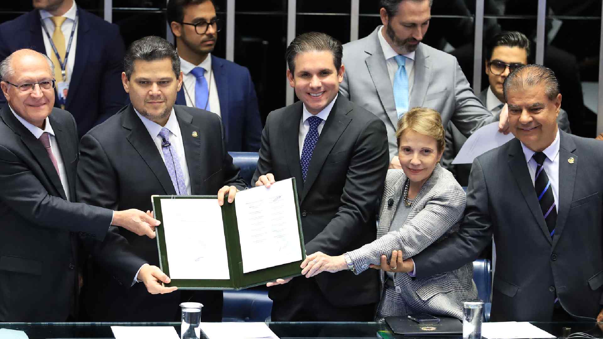 Também assinaram o documento o presidente do Senado, Davi Alcolumbre, e o presidente da Câmara, Hugo Motta — reforçando o peso institucional da medida.