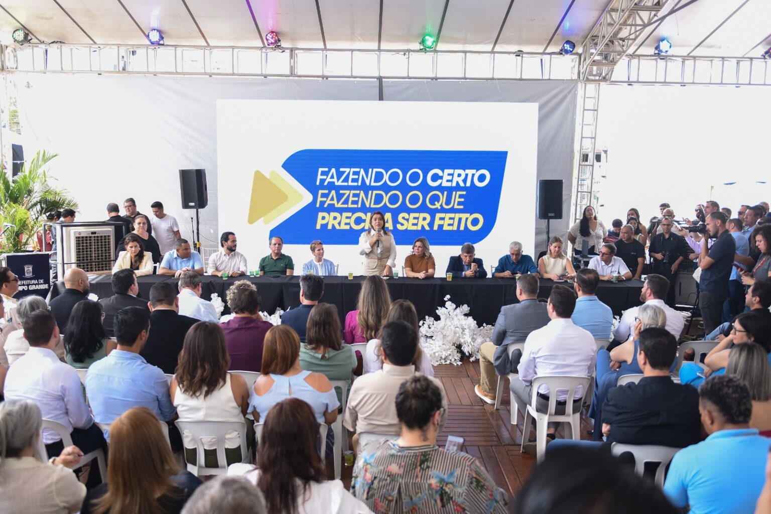 “Campo Grande entrou em movimento, e o nosso projeto é claro: avançar com mais eficiência, mais investimentos e mais resultados. Quero agradecer a Deus por essa oportunidade única de trabalhar por Campo Grande, marcando esse tempo com responsabilidade e compromisso com o dinheiro público. Enfrentamos não só as dificuldades, mas também o preconceito. Mas não somos mulheres de ‘mimimi’. Amamos o que fazemos, que é servir as pessoas e a nossa cidade. Seguiremos fazendo o certo e fazendo o que precisa ser feito, com coragem e eficiência”, destacou a prefeita.