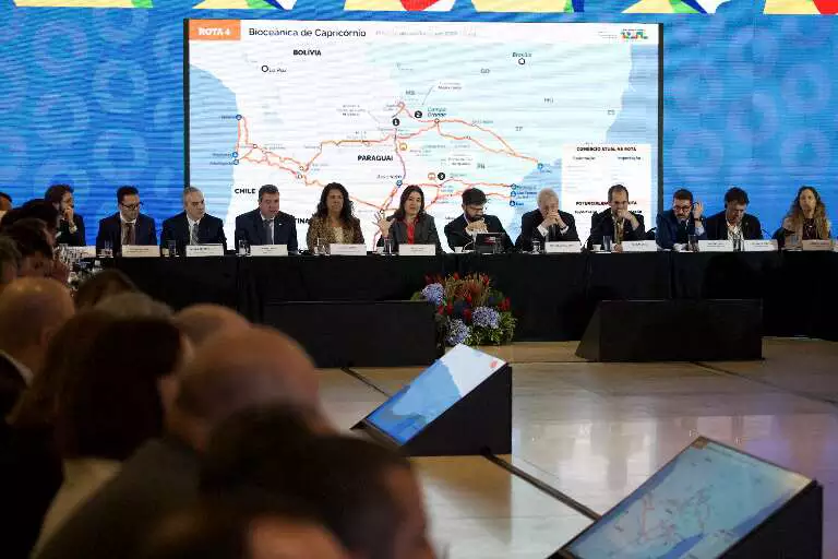 O investimento total previsto para os corredores logísticos é de US$ 10 bilhões, com recursos de instituições como BNDES, BID, CAF e Fonplata. Ao todo, estão programadas 190 obras, incluindo rodovias, portos, ferrovias e aeroportos.