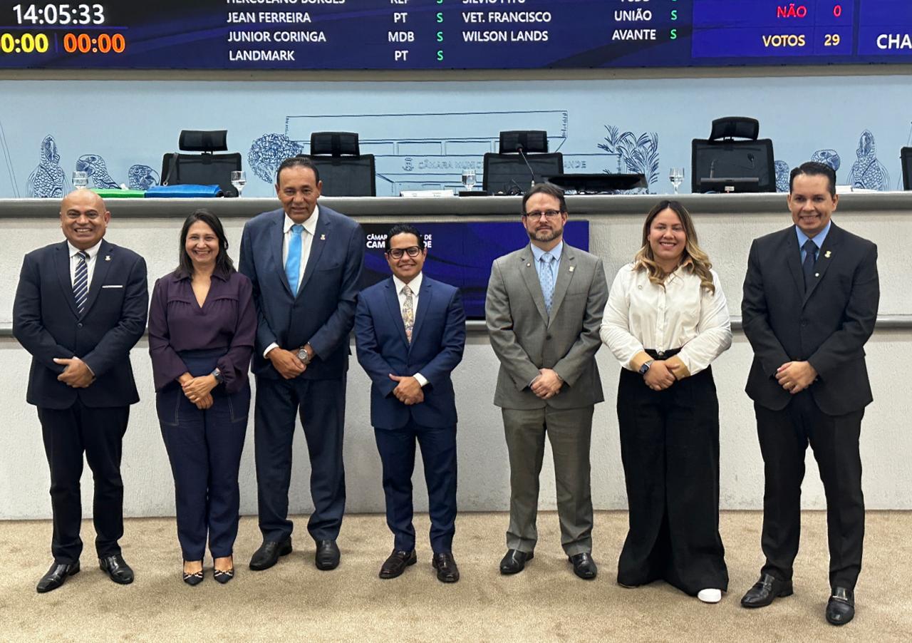 Com votos favoráveis dos 29 vereadores, eleição antecipada consagra recondução do atual presidente; parlamentares criticam ausência do PP na composição da nova mesa diretora