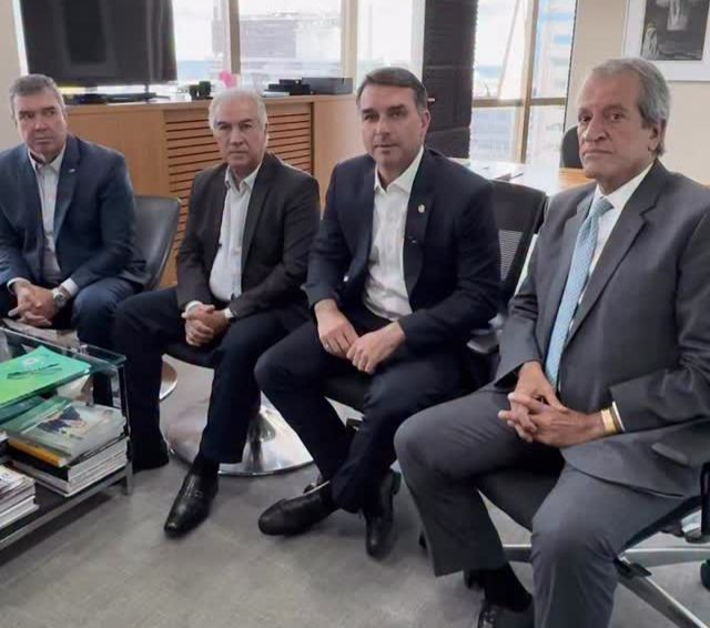 Uma publicação compartilhada na tarde desta quarta-feira (4) pelo governador Eduardo Riedel e pelo ex-governador Reinaldo Azambuja movimentou o cenário político de Mato Grosso do Sul. O post, em formato colaborativo nas redes sociais, mostra os dois ao lado do senador Flávio Bolsonaro (PL-RJ), apontado como pré-candidato à Presidência da República pelo PL, durante agenda em Brasília que contou também com a presença do presidente nacional da legenda, Valdemar da Costa Neto.