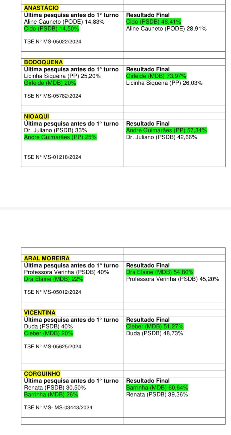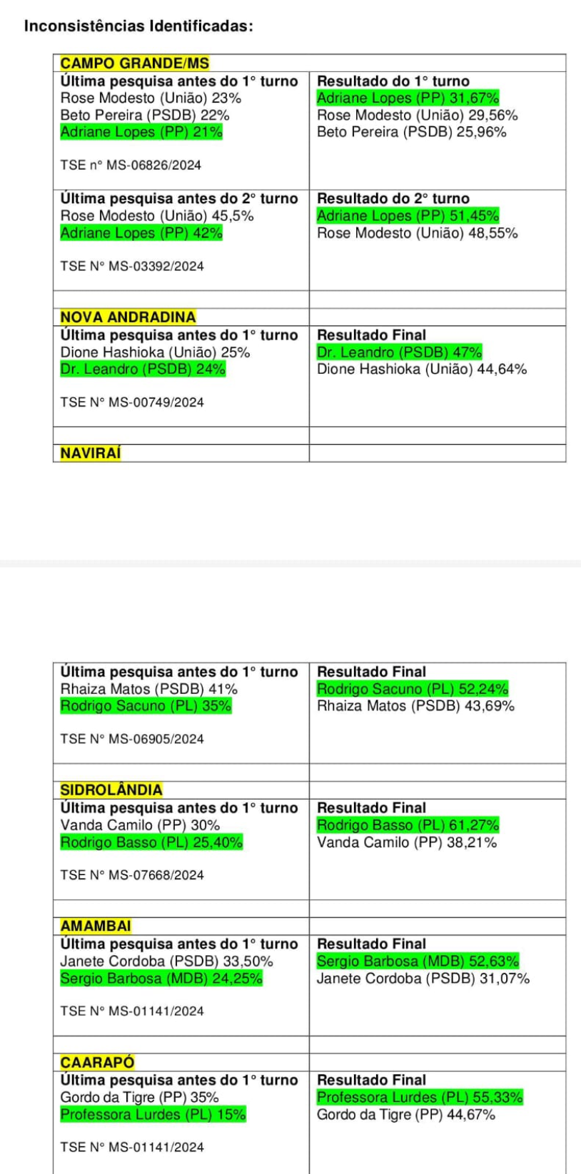 Em Campo Grande, o instituto falhou tanto no primeiro quanto no segundo turno. E o erro mais grave ocorreu no dia da eleição, quando o próprio Ueno anunciou, ao vivo, em programa de rádio, que Rose Modesto (União) havia sido eleita prefeita da capital, enquanto a vitória nas urnas foi de Adriane Lopes (PP).